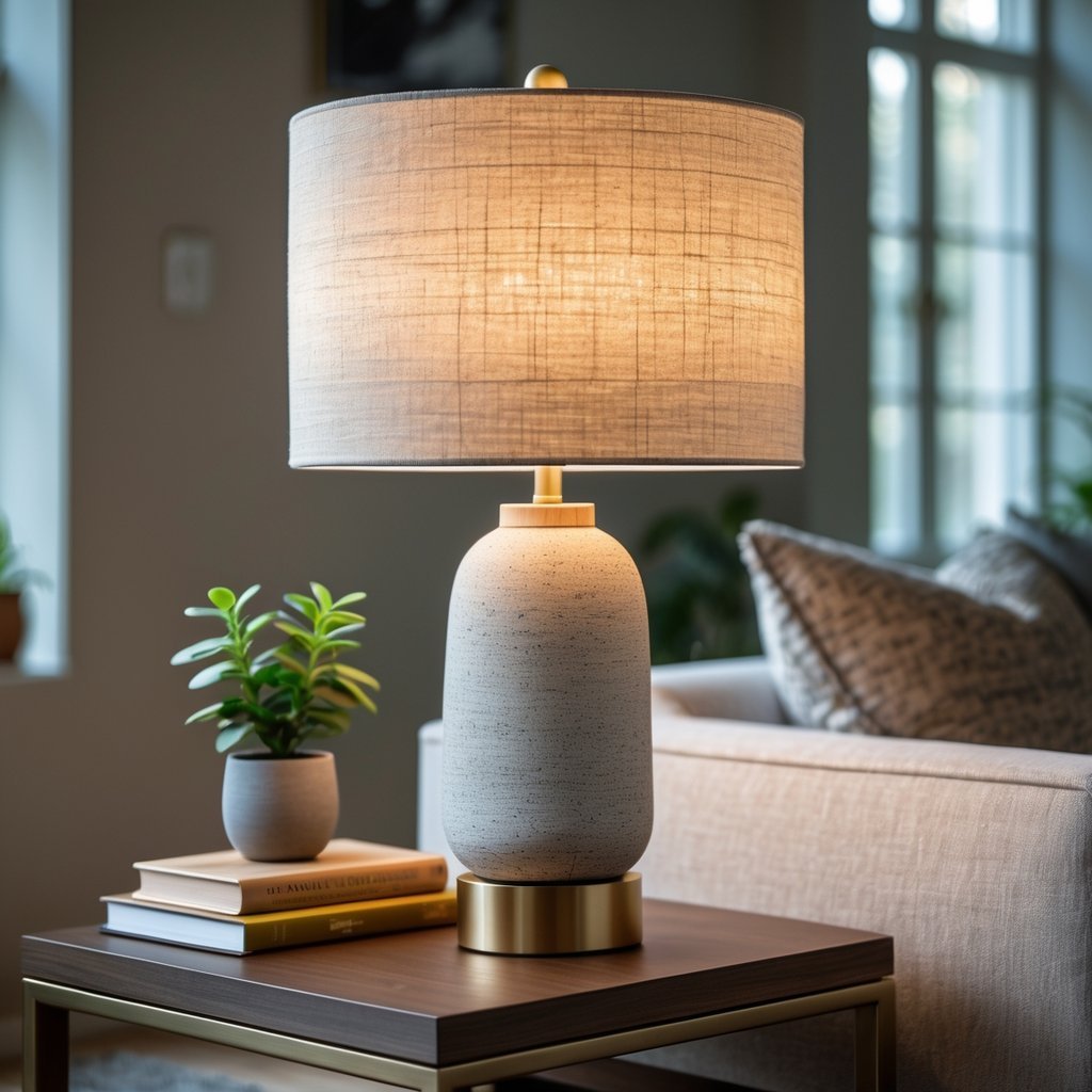 Choose a lamp that fits your room’s scale and style. A textured shade—like woven rattan, linen, or pleated fabric—adds visual interest without loud colors.