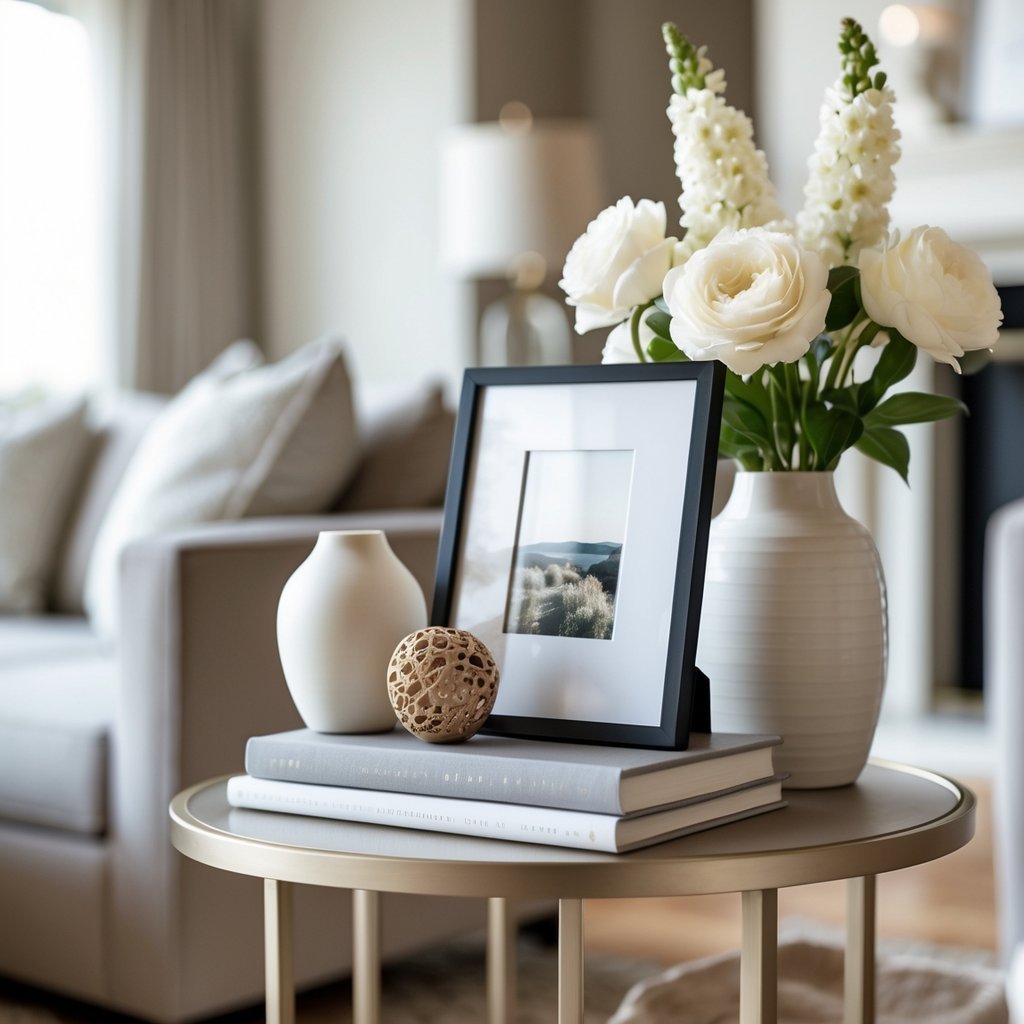 What are the best accessories to display on a living room side table?