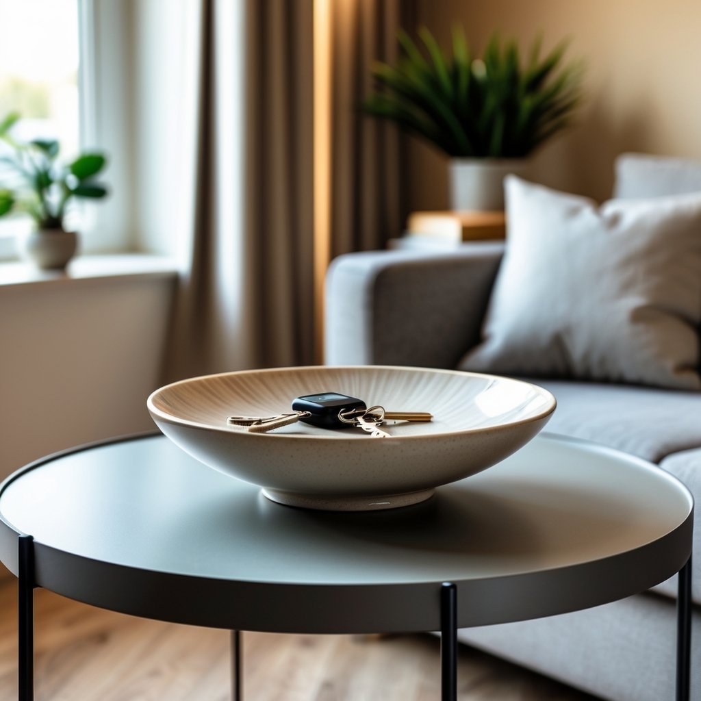 Place a small decorative bowl on your side table to catch keys, coins, and earbuds. It keeps clutter contained and saves time when you leave.