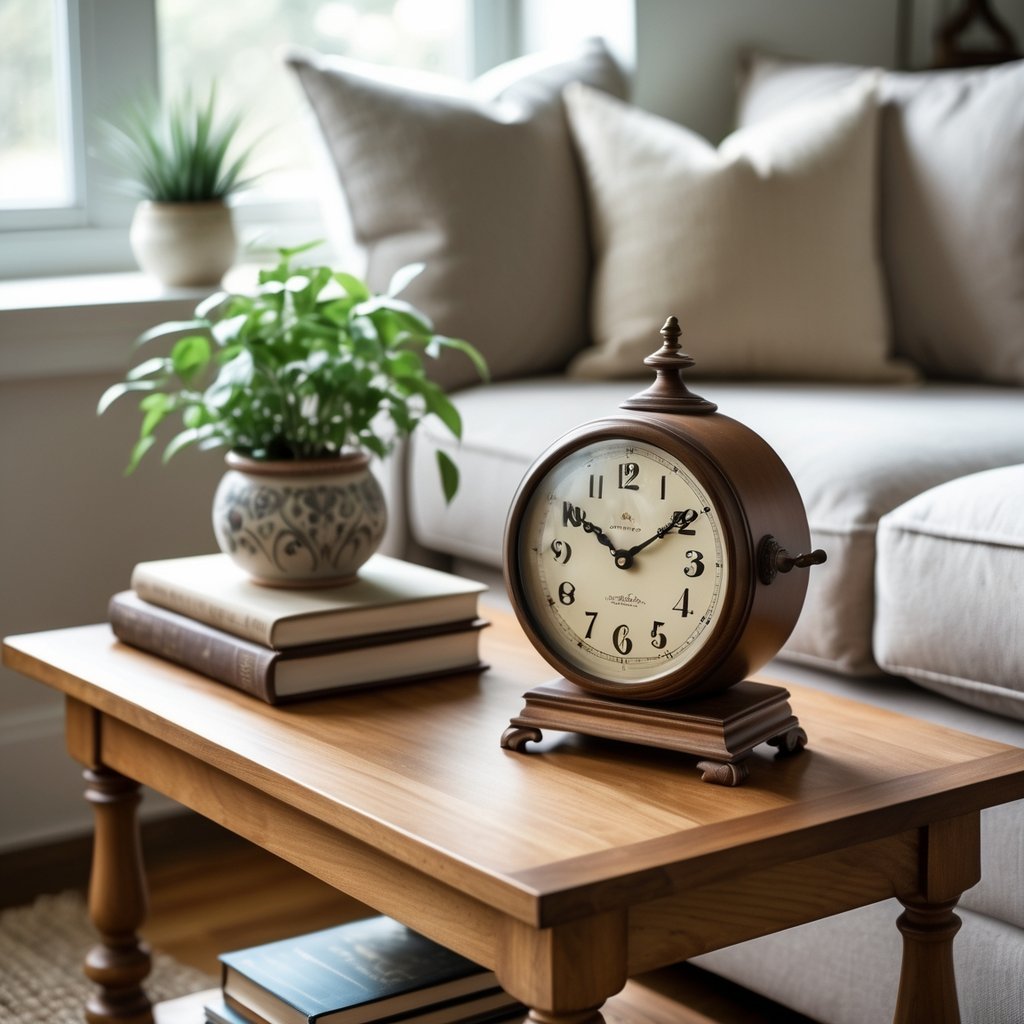 Place a vintage clock on your side table to keep time and add character.