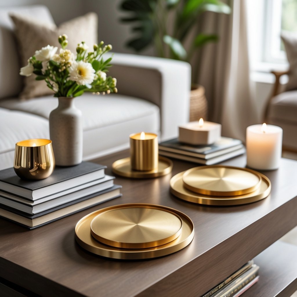 Use coasters with simple shapes to keep the look refined, or pick textured ones for extra interest. Mix metallics with wood, glass, or ceramic pieces to balance warmth and polish.