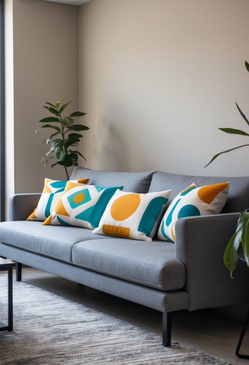Mix one large patterned cushion with smaller solid ones to avoid visual clutter. Choose colors that echo room accents, like mustard, navy, or muted metallics, for balance.