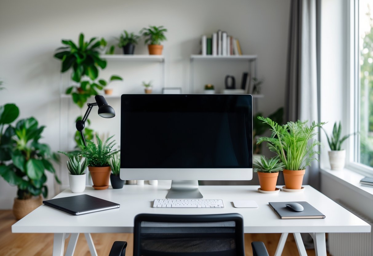 Bring living plants into sight and reach. Start with low-maintenance options like pothos, snake plant, or ZZ plant. Place a medium plant beside the desk and a small one on a shelf or windowsill.