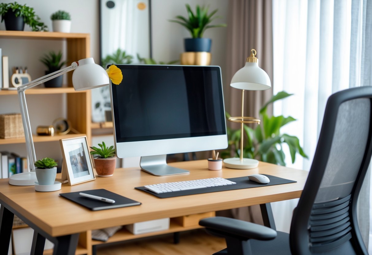 Choose a small set of items that reflect your taste and support work: a favorite lamp for task light, one piece of art, and a tray for daily desk tools. Keep color and texture choices tight so the space feels calm and intentional.