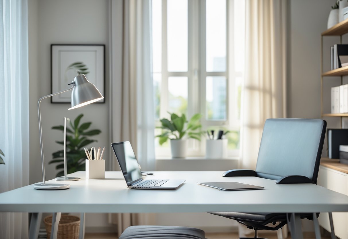Select lighting layers: bright overhead light for general tasks, an adjustable desk lamp for focused work, and a warm table lamp for video calls or late-afternoon wind-down. Aim for 400–600 lux at the desk surface for clear visibility.