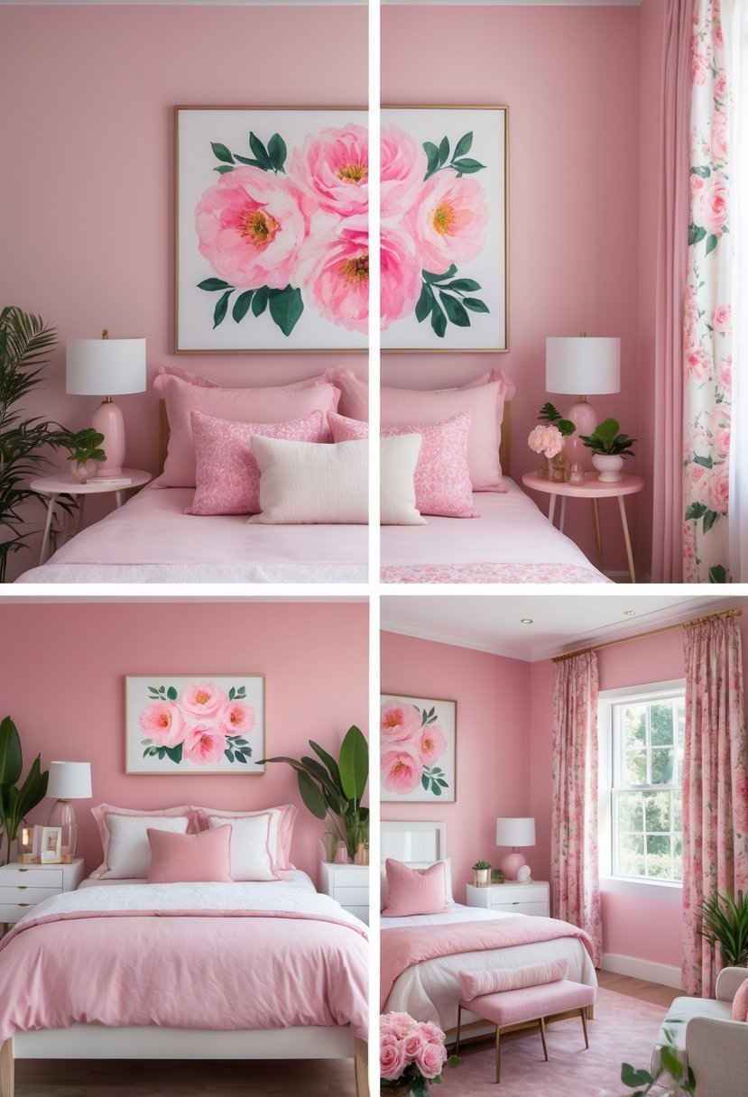 Choose pink floral artwork to add softness and life to your bedroom. It brings color without overwhelming the room.